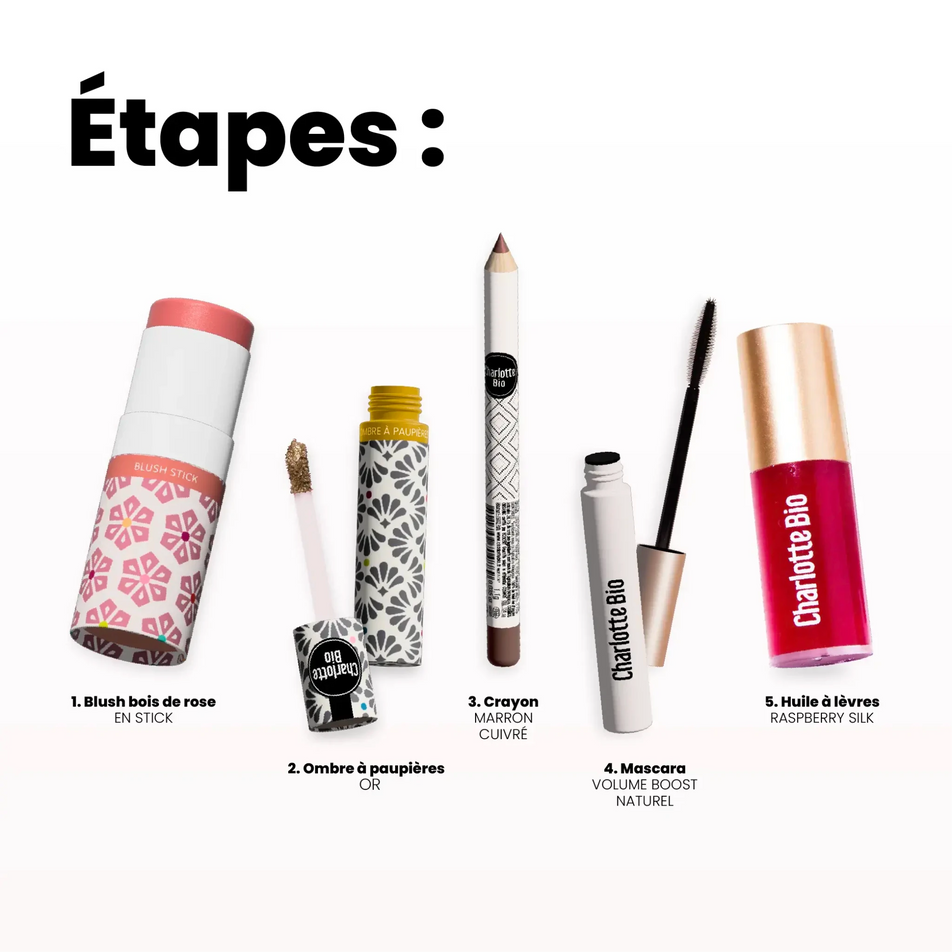La Routine Découverte make up Charlotte Bio réunit 5 essentiels make up bio, vegan et fabriqués en France & Italie :