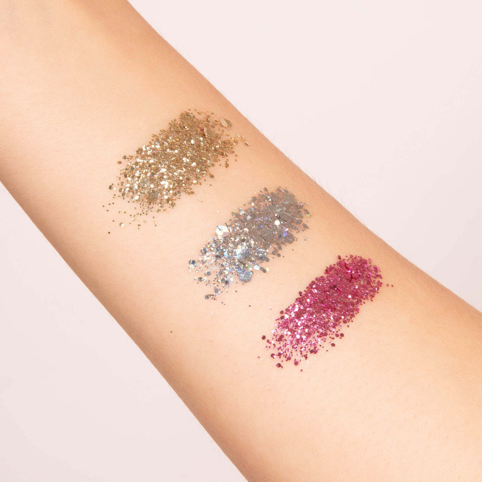 Kit paillettes visage|Gold, Silver, Fushia + Pinceau + Baume